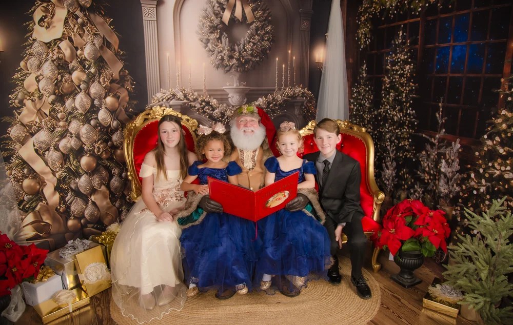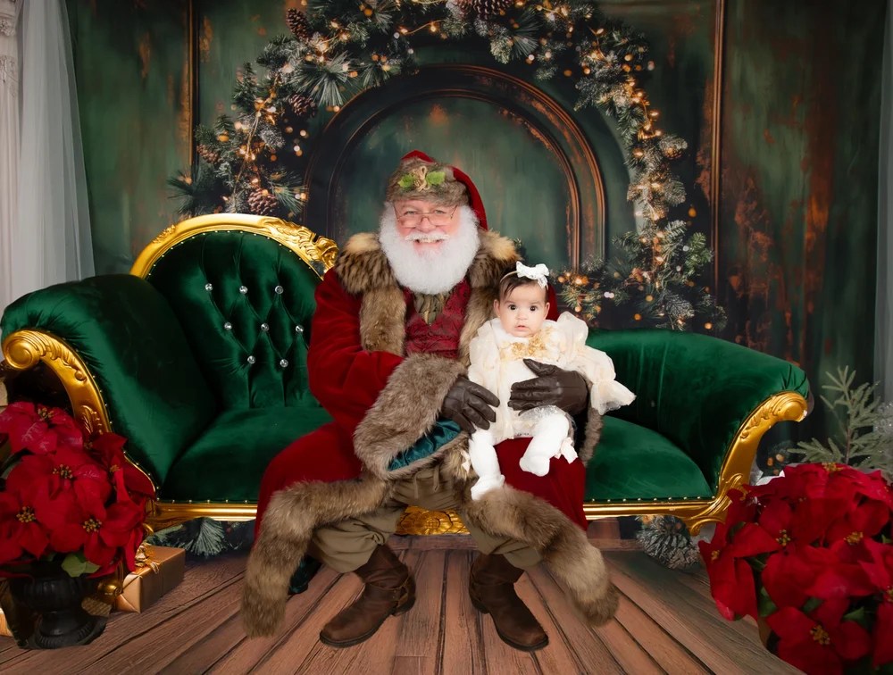 Santa will engage with your child, creating heartwarming moments as they share their holiday dreams. You may choose to include Santa in some or all photos—just let us know upon arrival.